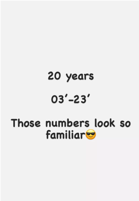 “20 years. ’03 – ’23. Those numbers look so familiar,” he said, adding a smiling face with sunglasses emoji.
