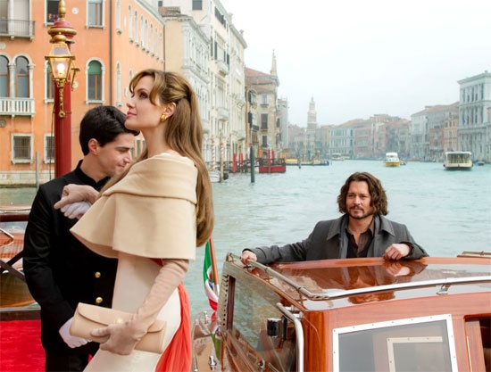 THE TOURIST is a romantic thriller starring Johnny Depp and Angeline Jolie. The story opens in Paris. The French police are working with Scotland Yard trailing beautiful Elise Ward. They’re trying to capture her boyfriend, Alexander Pierce, who stole several billion dollars from an English gangster and failed to pay $744 million in taxes. On instructions from Alexander, Elise makes the police think American math teacher Frank Tupolo is Alexander. They finally figure it out, but the gangers and his henchmen do not. The cat and mouse story ends up in Venice, Italy. Several twists at the end keep things interesting.